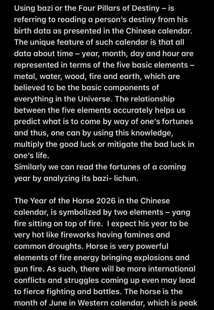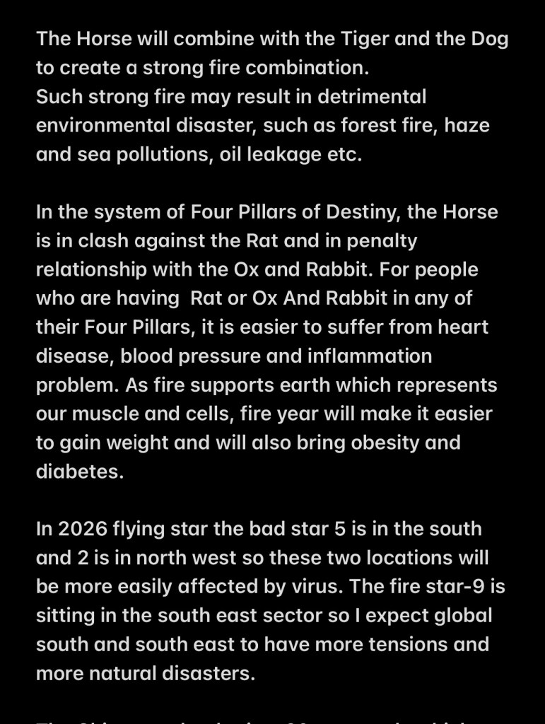 Horse year 2026- lichun- bing wu- year of triple fire Share this: Click to share on X (Opens in new window) X Click to share on Facebook (Opens in new window) Facebook Like Loading...